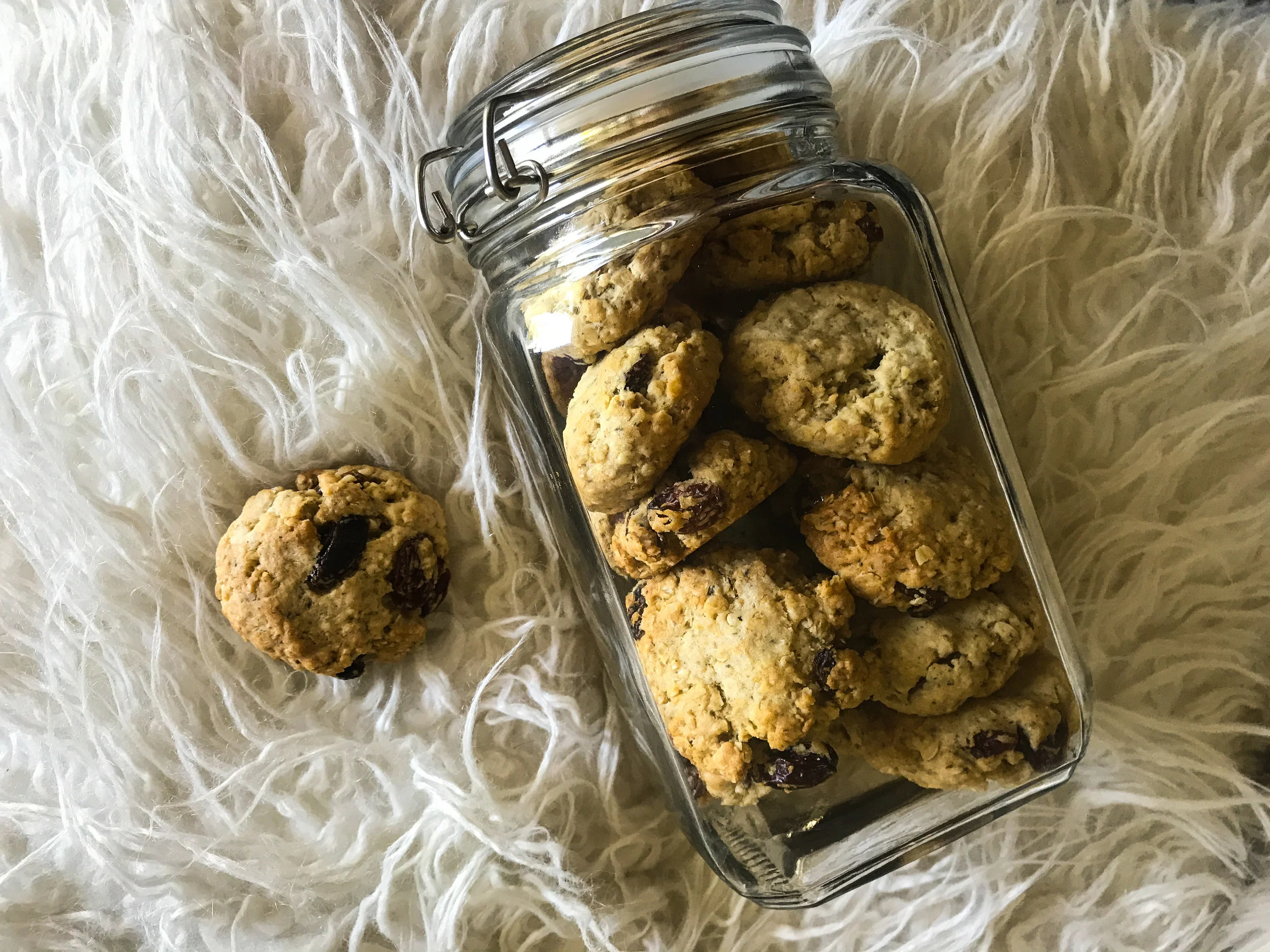 OATMEAL RAISIN COOKIES – makes 24 cookies (adapted from AllRecipes)